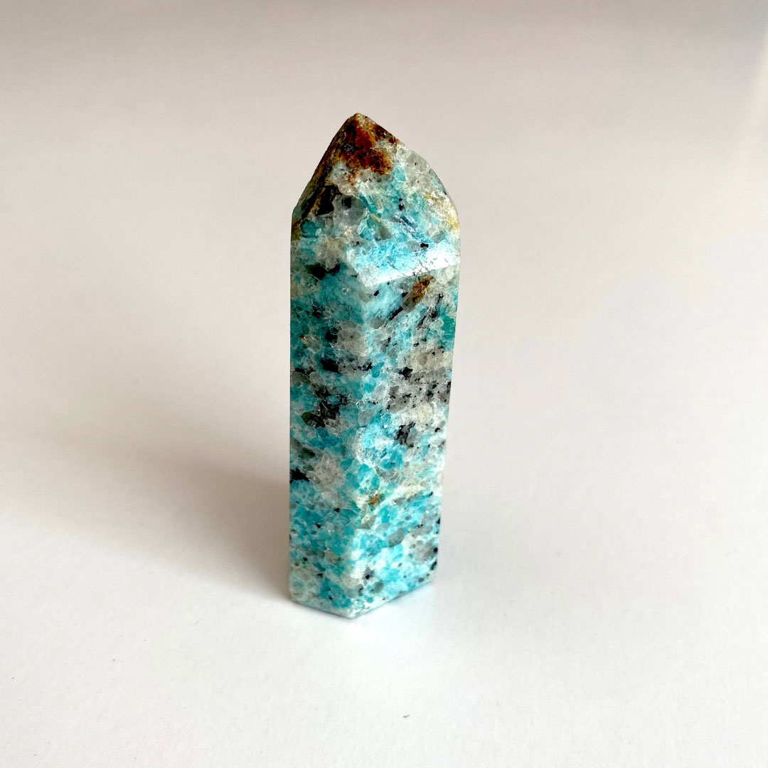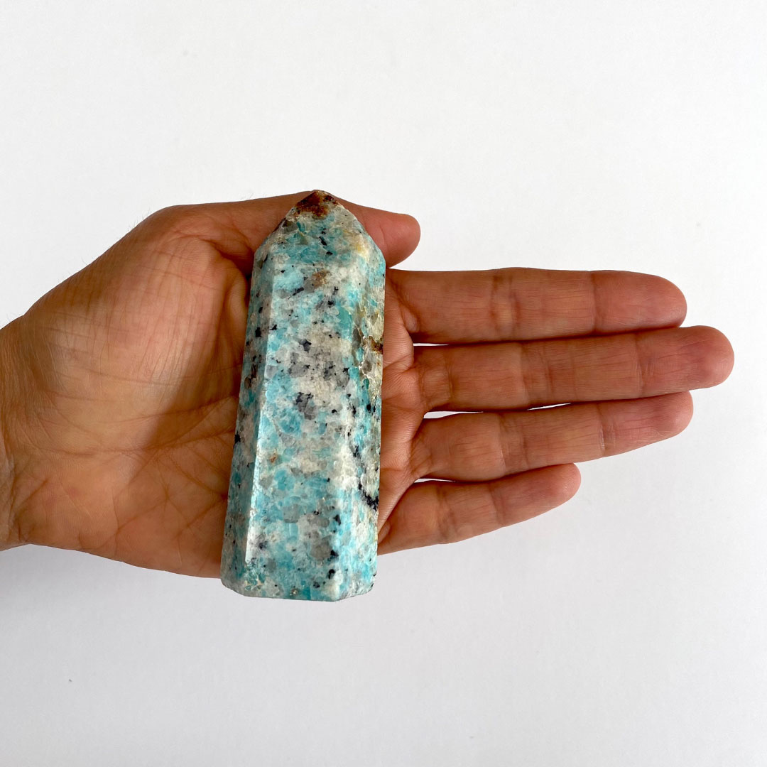En resumen, el obelisco de amazonita con granate combina las propiedades calmantes y equilibrantes de la amazonita con la energía estimulante del granate. Es una opción poderosa y hermosa para aquellos que buscan armonía, vitalidad y expresión personal en su vida.